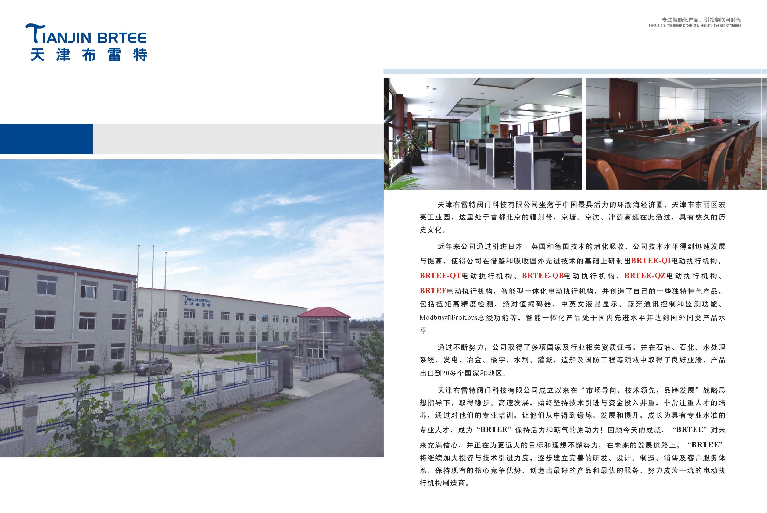 ?天津布雷特閥門科技有限公司坐落于中國具活力的環渤海經濟圈天津市東麗區宏亮工業園,這里處于首都北京的輻射帶 京塘 京沈 津薊高速在此通過,具有悠久的歷史文化。近年來,公司通過引進日本,英國和德國技術的消化吸收,公司技術水平得到迅速發展與提高,使得公司在借鑒和吸收國外先進技術的基礎上研制出BRTEE-QI電動執行機構,BRTEE-QT電...